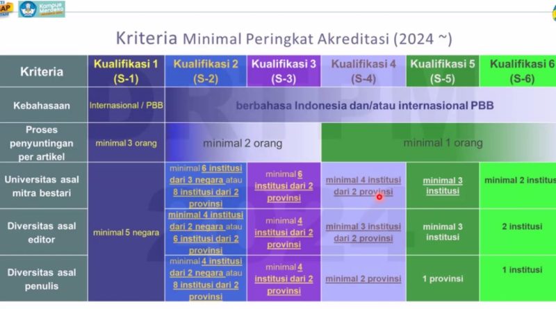 Read MoreThe table presents the minimum criteria for journal accreditation rankings starting from 2024, structured into six qualification levels, namely S1